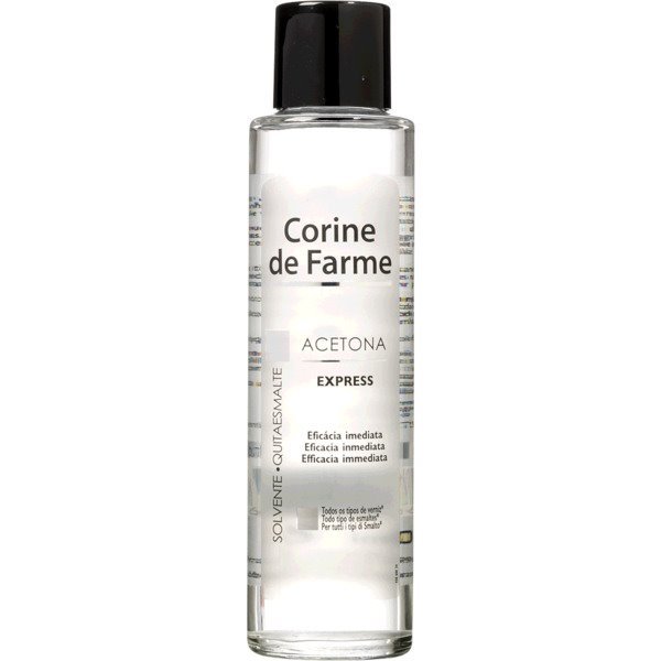 Acetona Corine de Farme: frasco de vidro, acetona de qualidade.